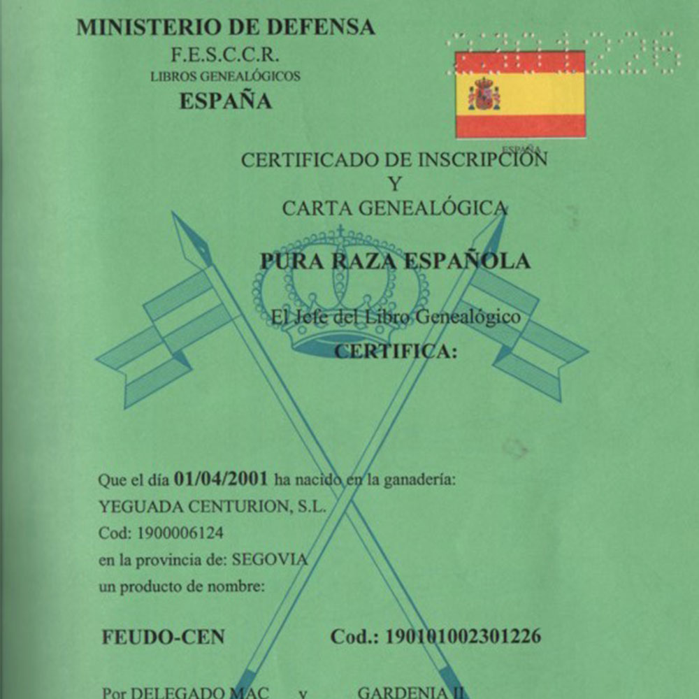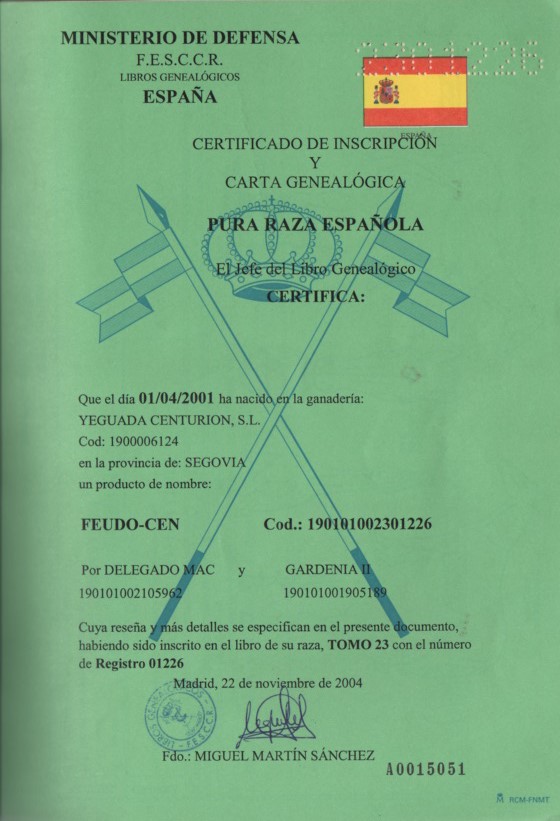 Lugar de nacimiento:YEGUADA CENTURION, S.L.